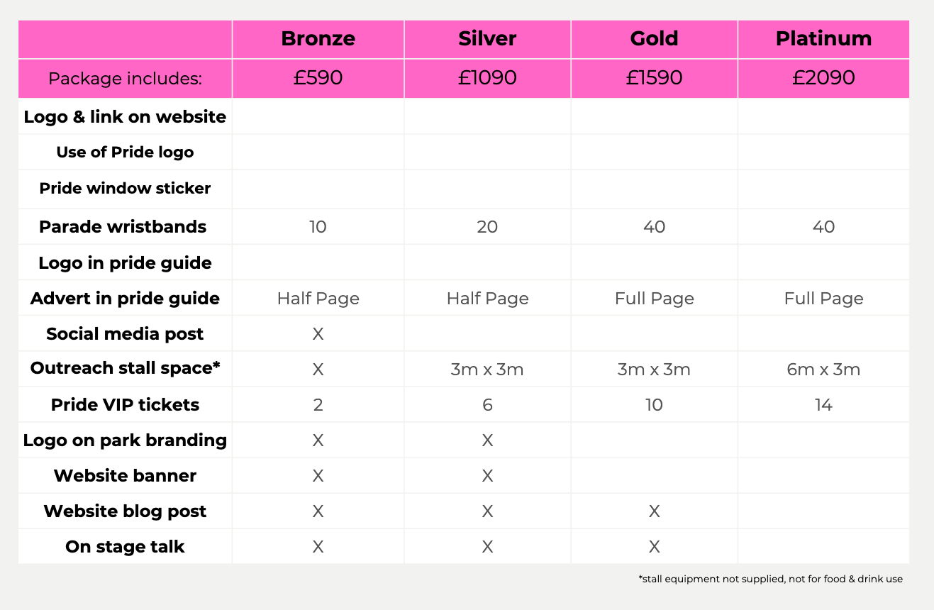 Thank you for showing an interest in advertising at or sponsoring our 2024 Pride event being held in Guildford.